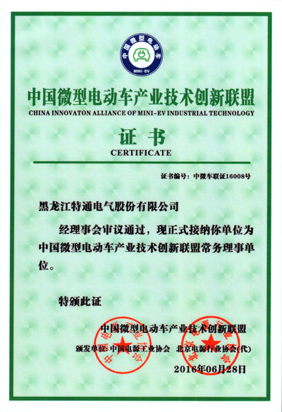 特通電氣成為“中國(guó)微型電動(dòng)車產(chǎn)業(yè)技術(shù)創(chuàng)新聯(lián)盟”會(huì)員單位
