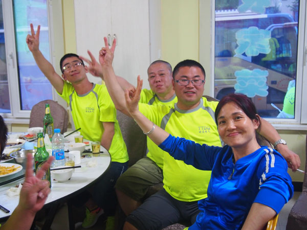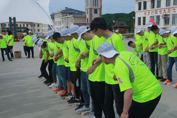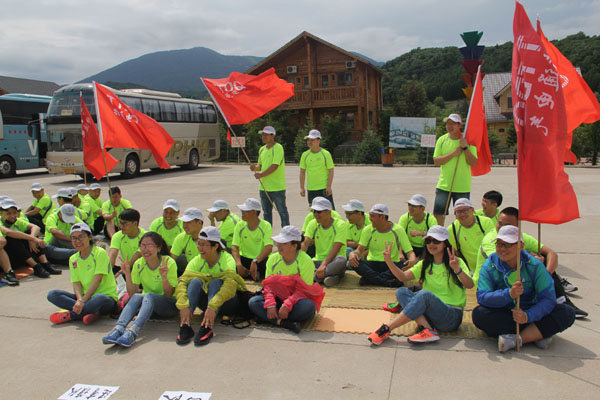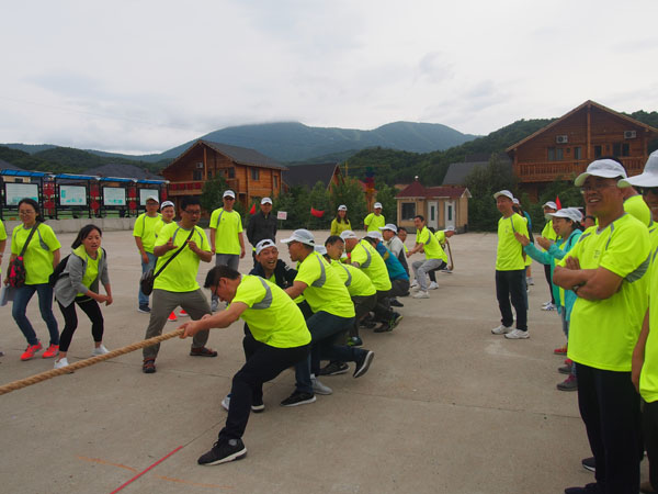 14日清晨,“微風(fēng)與腳步同行,陽光共笑容一色”,亞布力鍋盔山我們來了,急切要投入青山綠水的懷抱,三個小時的車程,到了目的地大家下車首先看到的就是驚喜,我們住的是林區(qū)的木制別墅,房間里充滿了樹木的清香。大家放下包來到飯店,中午公司給大家準(zhǔn)備了可口的飯菜,大家不知是餓了還是農(nóng)家綠色菜肴的美味,吃得個快活逍遙。大家快速吃完飯就來到了拓展訓(xùn)練場地集結(jié)。
